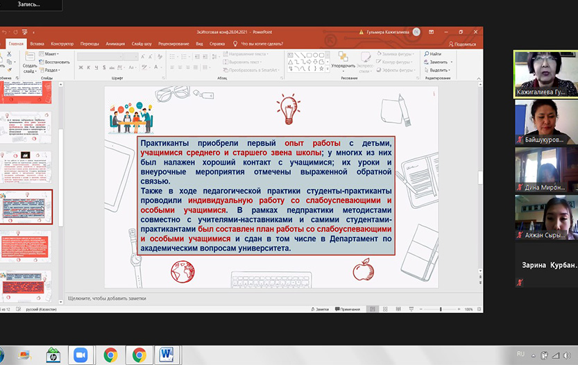 The conference ended with a speech by the head of the department, Professor Saule Abisheva, who noted that the teaching practice was held at a high organizational level, and that all the tasks of practical training were achieved.