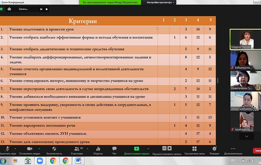 The senior methodologist of the department, Professor Gulmira Kazhigalieva, methodologists Elena Lomova, Gulnur Baishkurova, Madina Abaeva, Mekhirnissa Khavaidarova spoke at the meeting.