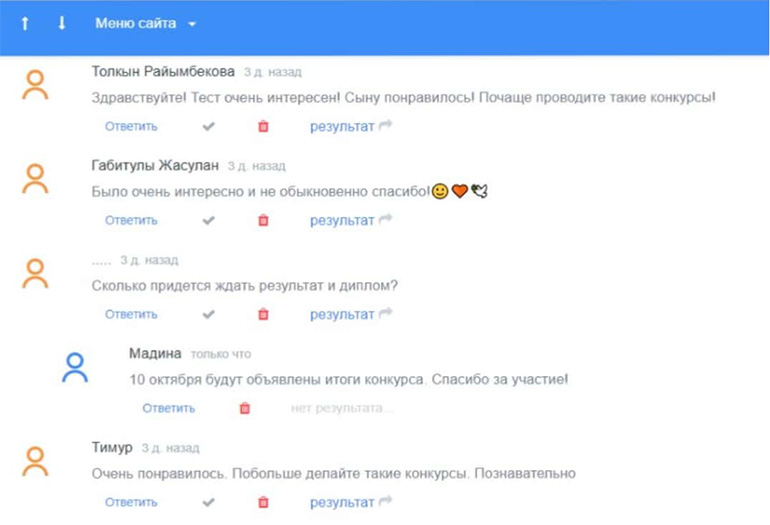 The competition was attended by 1123 participants, including students from 65 schools from 10 regions of the republic, as well as 1st year students of of Abai KazNPU, universities of Pavlodar, Kyzylorda, Atyrau and other cities of RK. I would especially like to note the continuity of generations: this is the participation of schoolchildren, teachers, who are our graduates. (Bugenov N., Fizlova Z., etc.)
