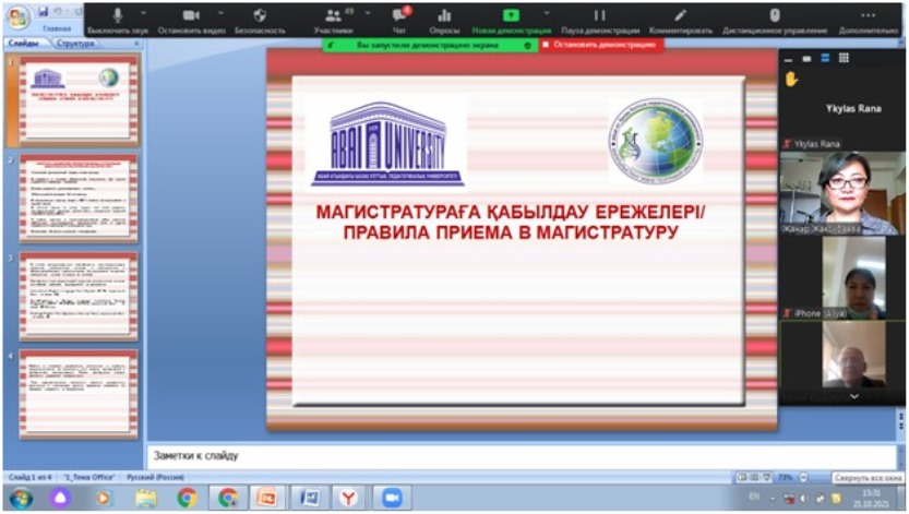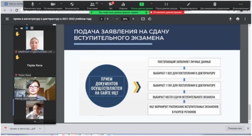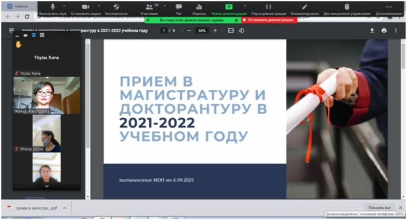 On October 21, 2021, the Marketing Department of the Institute of Natural Sciences and Geography organized the event «Rules for admission to the Master`s and PhD doctoral programs» in order to attract teachers, young specialists of republican schools to master`s and doctoral studies.