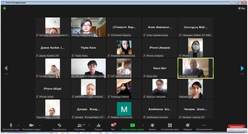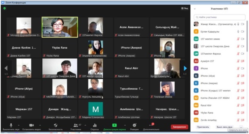 Participants: teachers and deputy directors for academic affairs of secondary schools No.157, No. 143, No. 92 of the city of Kyzylorda, Lyceum School No. 264 of the city of Kyzylorda and school No. 101 named after Ali Muslimov, secondary schools No. 80, No. 99 of the Karmakshi district of the Kyzylorda region.