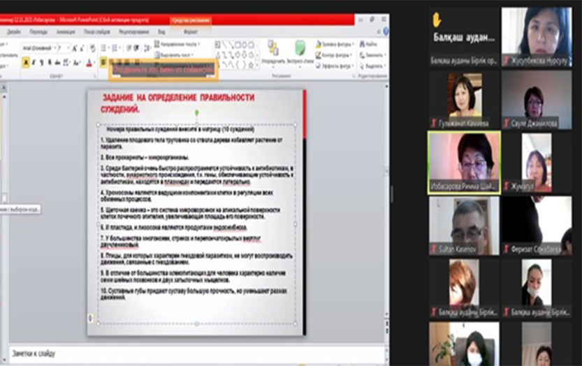 On November 12, 2021, at the Institute of Natural Science and Geography, the Career Development Department held an online seminar for teachers of secondary educational institutions of the Zhambyl and Balkhash districts of the Almaty region to prepare students for research projects, Olympiads at various levels.