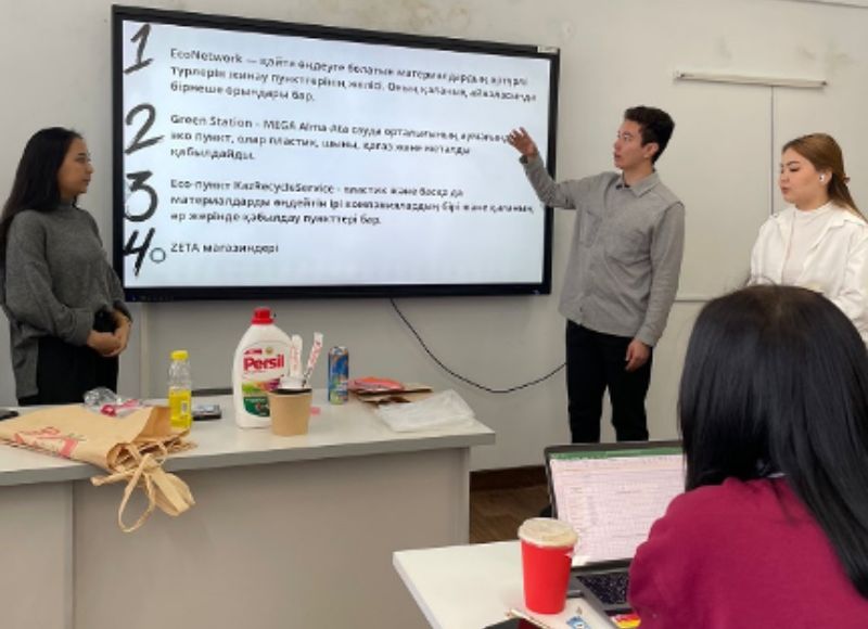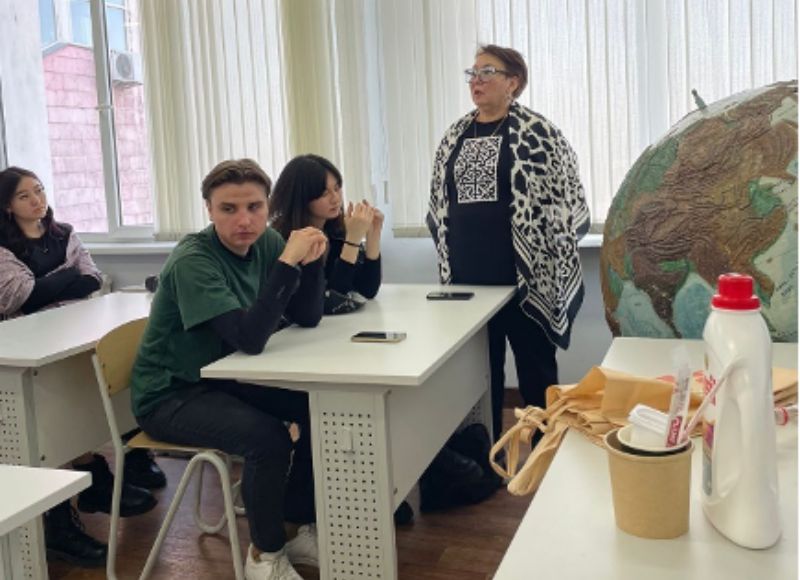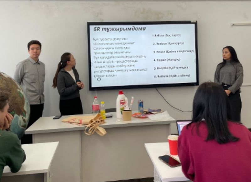 "6R Concept and Waste Management" at Abai University On November 25, 2024, members of the Ayala eco-club conducted a training with students (geographers, ecologists) on the topic "6R concept and waste management at KazNPU named after. Abai." Students were given an interactive presentation and interesting environmental games were organized for feedback. Based on the results of the games, teaching staff of the Department of Geography and Ecology - Tilekova Zh.T., Myrzaly N.B. spoke, who approved the role and need for such events to improve environmental culture. Students expressed their examples of environmentally friendly behavior, and also noted the importance of training, because We learned a lot of new and useful information, in particular, about non-recyclable waste and waste collection sites that can be disposed of.