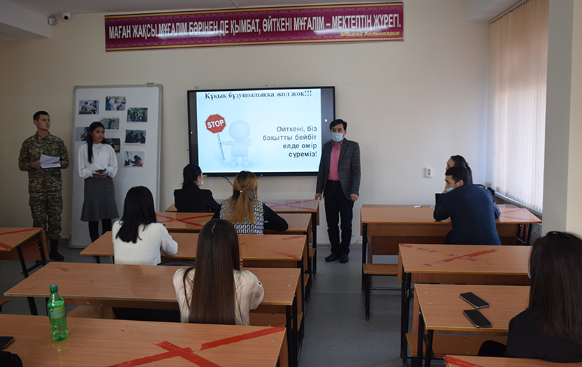 Zhomart Simtikov, Head of the Department of Political Science and Social and Philosophical Disciplines, Nurbolat Manapbaev, Deputy Director for Educational Work at the Institute, and Olzhas Karibayev, teacher, took part in the event. During the discussion, future sociologists expressed differing views on the development of juvenile delinquency and its impact on society.