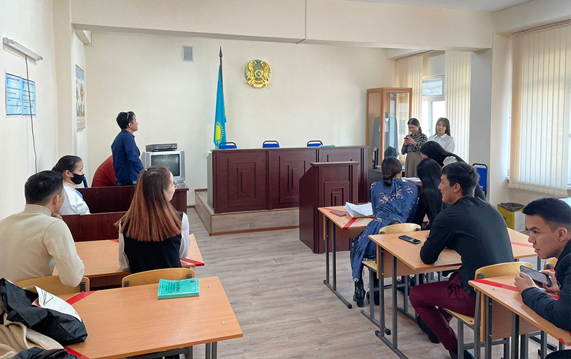 In the trial, a criminal case was considered under Article 188 of the Criminal Code of the Republic of Kazakhstan - Theft, in the form of a business game in order to better assimilate the theoretical provisions of criminal procedure law by students. Students performed the roles of judge, prosecutor, lawyer, victim, accused, witness, showing their skills in applying the norms of the relevant legislation.