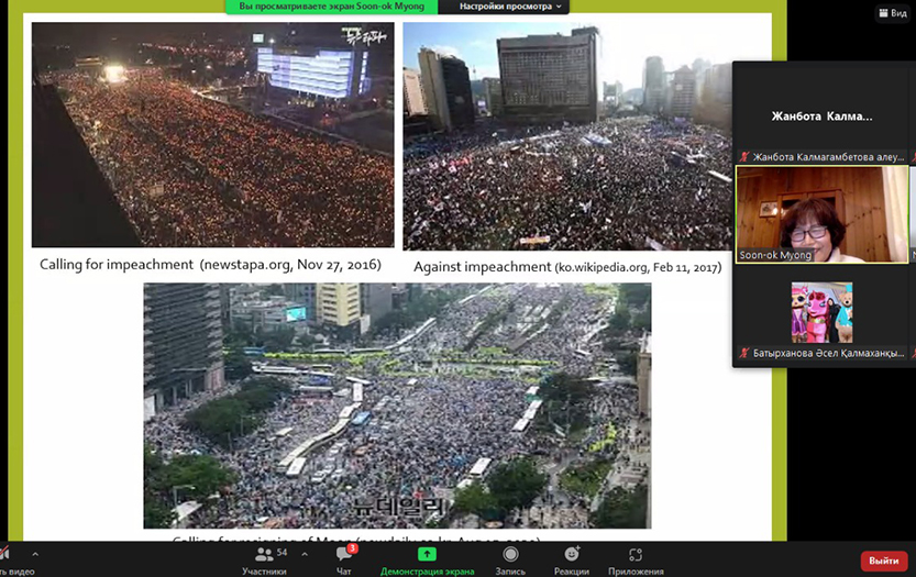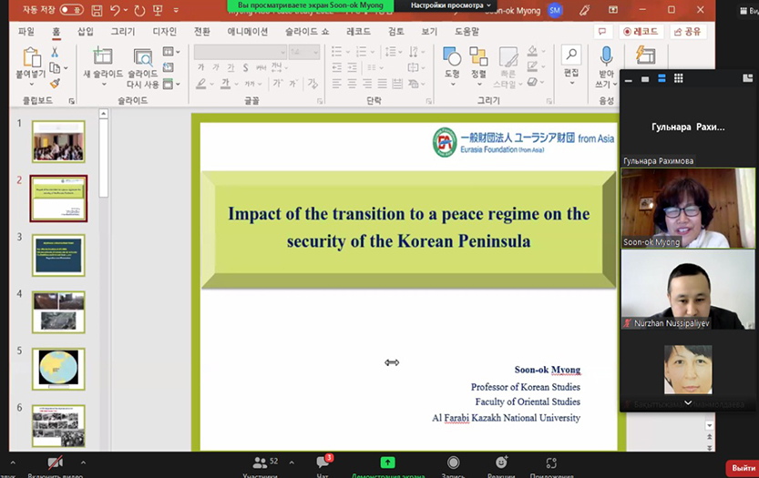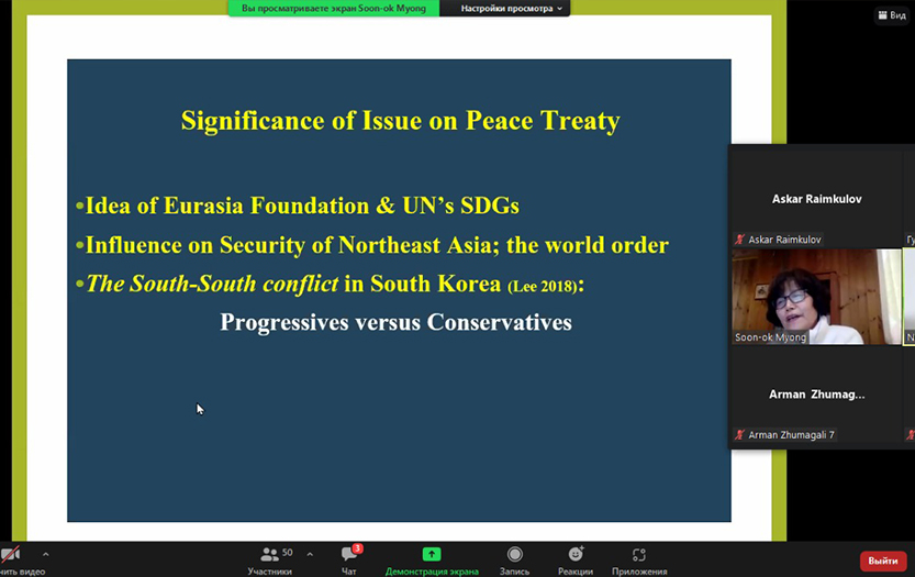 On February 10, 2022, the Department of Political Science and Socio-Philosophical Disciplines of the Institute of History and Law held a lecture session on the Eurasia Foundation (from Asia) project. The lecture was conducted by an anthropologist, Professor Soon-ok Myong. The topic of the lecture: «The impact of the transition to a peaceful regime on the security of the Korean peninsula». During the lecture, the professor asked the audience what illusions you see at least in North Korea and South Korea. The doctoral students answered the question with great enthusiasm. Professor Soon-ok Myong further noted that the outcome of the war between North Korea and South Korea, which began in the 1950s, was economically and morally painful for both sides. Despite the fact that this war was stopped by the intervention of the UN, there have still been no peacekeeping contracts between the two countries, and security is also not full-fledged. Due to the lack of a treaty, the population of the peninsula was in danger.