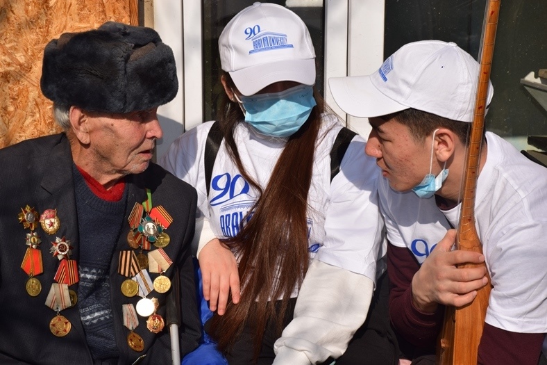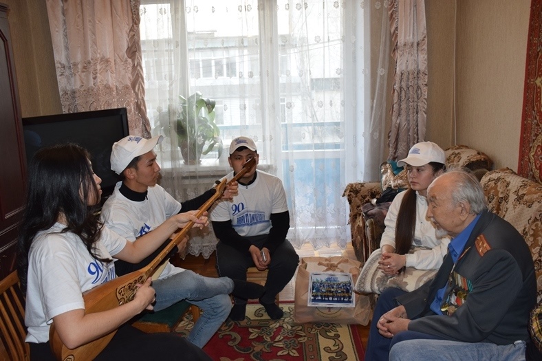 On February 28, 2022, on the initiative of student self-government structure of Institute of history and law, in honour of Day of gratitude, the event «Ardagerlerdi ardaktayik» was organized. Students visited the homes of Great Patriotic War veterans living in Medeu district of Almaty, helped the elderly people with household chores, gave them small gifts, played dombra and sang songs, showing their skills.