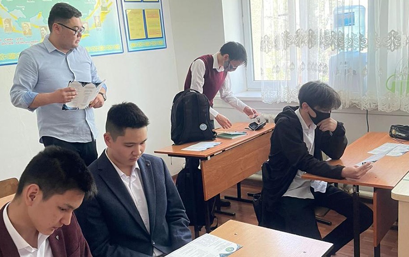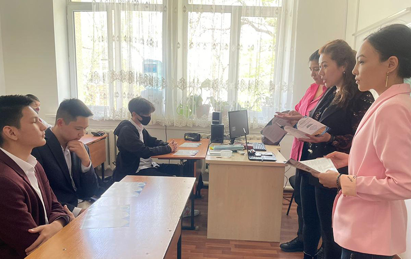 On April 13, 2022 teachers of Political science and social and philosophical disciplines department of the Institute of History and Law, Batyrkhanova Asel, Uldana Aripzhanova, Aigerim Sarybaeva and Dauren Amangeldy conducted career guidance activities for students of 11th grades of secondary school-college«Kokil» in Almaty. The theme of the meeting was «Understanding Society - Learning the Future!
