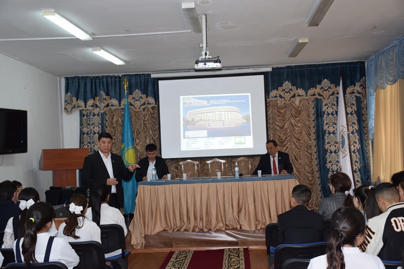 Associate Professor Ersaiyn Moldasanov spoke on «The place of the university in the world market», Associate Professor Mukhtar Muratkazin on «The main pedagogical university of the country». They and senior lecturer Zhankushkov Baurzhan exchanged their views on the theme «Seven steps in the choice of profession» and gave detailed information about UNT-2022, social assistance in high school, the military department, the International Olympiad «Abay`s Prize», student life, answered questions of graduates and their parents.