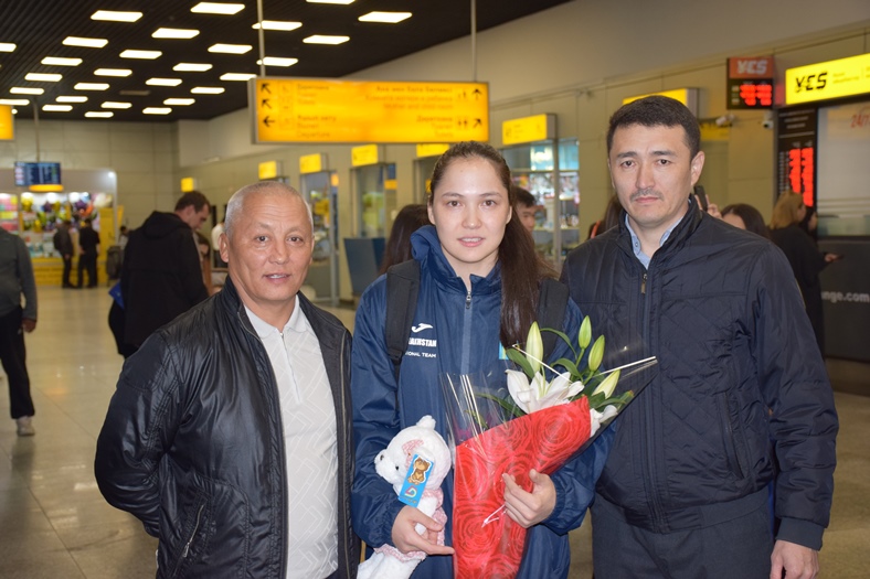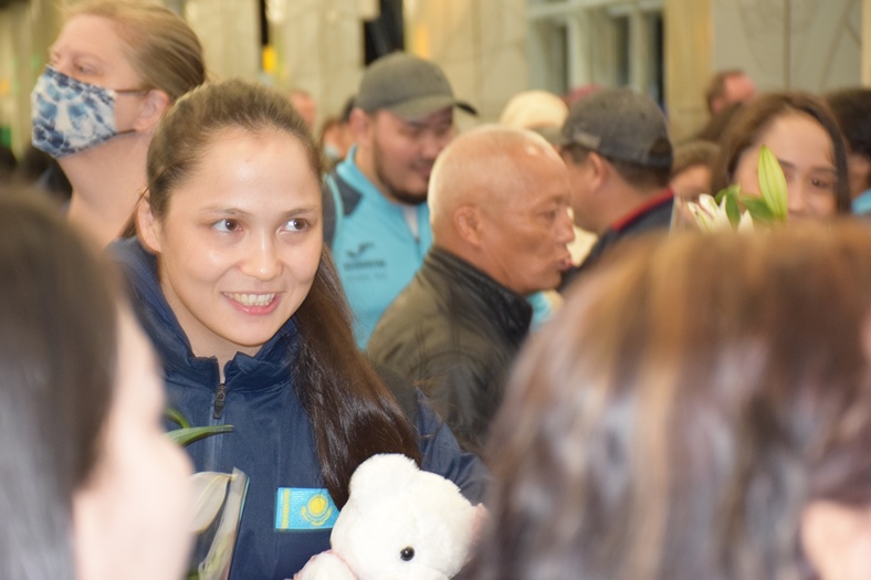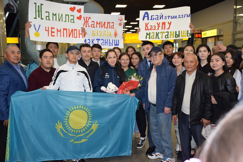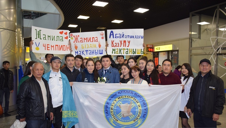 On April 25, 2022 our champion was welcomed solemnly at the airport in Almaty, where there were representatives of the Directorate of the Institute of History and Law, members of the Youth Committee and students.
