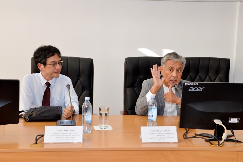 On September 13, 2022, in order to strengthen ties with international partner universities, a meeting and discussion forum of the faculty of the Institute of History and Law was held with a Japanese scientist, Professor of Central Asian Studies at the Slavic Center of Hokkaido University, Doctor of Philosophy Tomohiko Uyama. The event was attended by Chingis Nurlanov, vice-rector for social development of Abai KazNPU, Gabit Kenzhebaev, director of the Institute of History and Law, as well as scientists, young researchers and students of the institute.