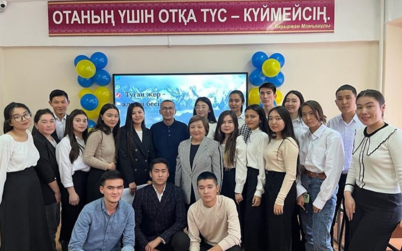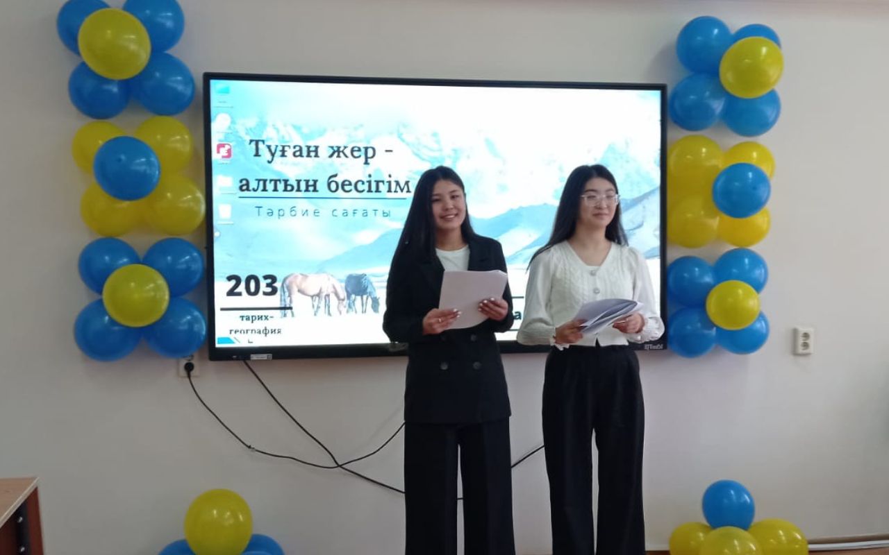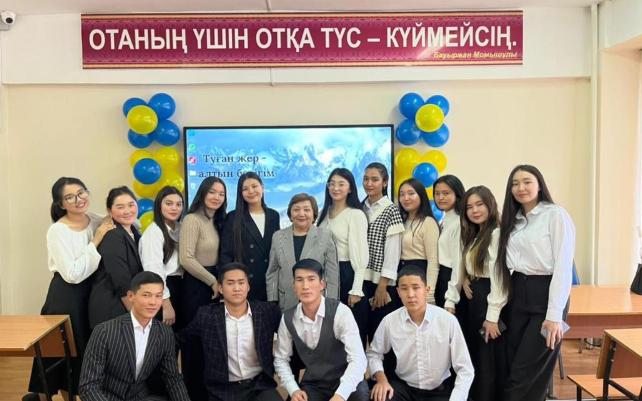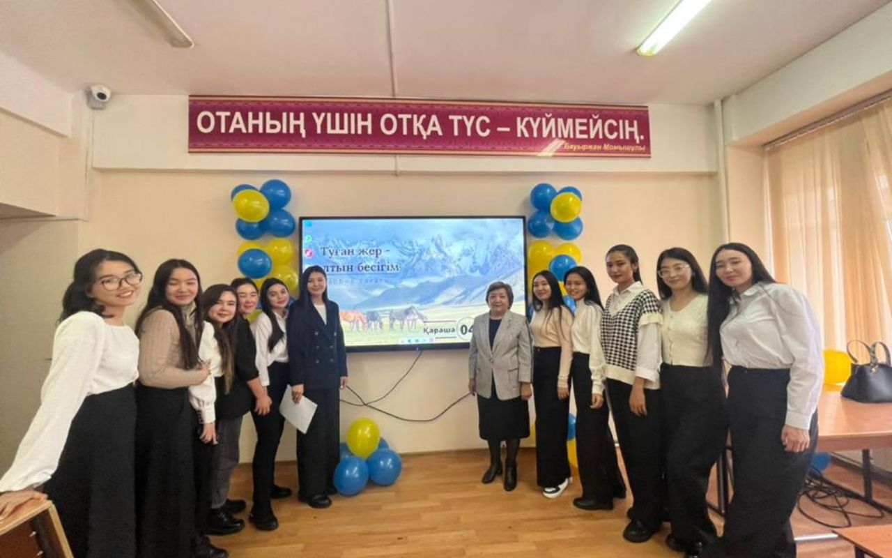 On November 5, 2022 an open educational hour «Tugan zherim - altyn besigim», organized by students of 203 group of the specialty «History and Geography» and the group adviser, Professor Tulekova Mereke was held at the Department of World History of the Institute of History and Law. The aim of the event was to teach young generation to love the Motherland, to know the history of their country, to honour and protect the native land, to form patriotic young people, who can think, express their thoughts artistically, to appreciate the spiritual and natural resources of Kazakhstan.
