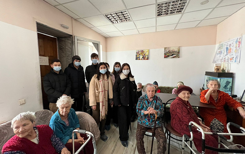 On February 27, 2023, students of the Institute of History and Law of Abai KazNPU visited the Home for the Elderly in Almaty. The event was organized by the student self-government organization. With the funds raised, food and various basic necessities were bought and given to lonely elderly people. In addition, students played dombra, sang beautifully with guitar and gave everyone a good mood. The young people thus expressed their warm feelings towards our elderly people in a difficult life situation. Many thanks to the faculty and students of the institute, who took an active part in the charity event! May there be many such good deeds!