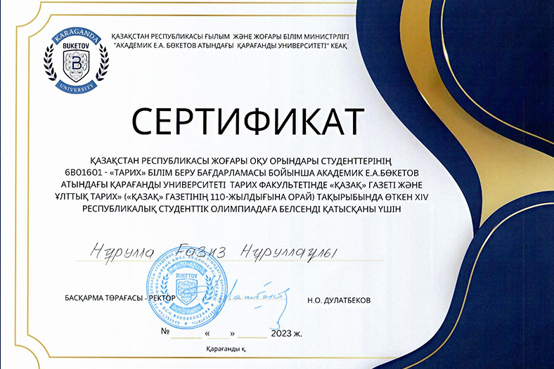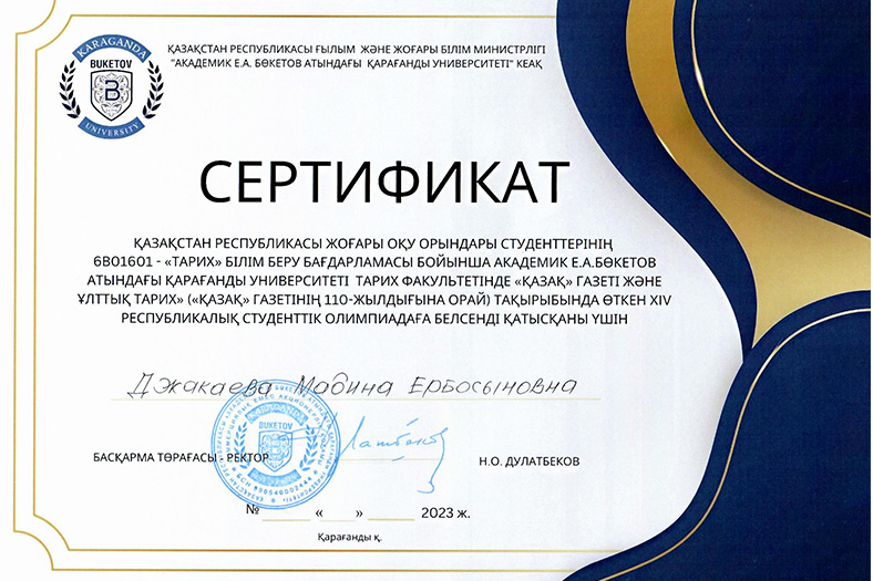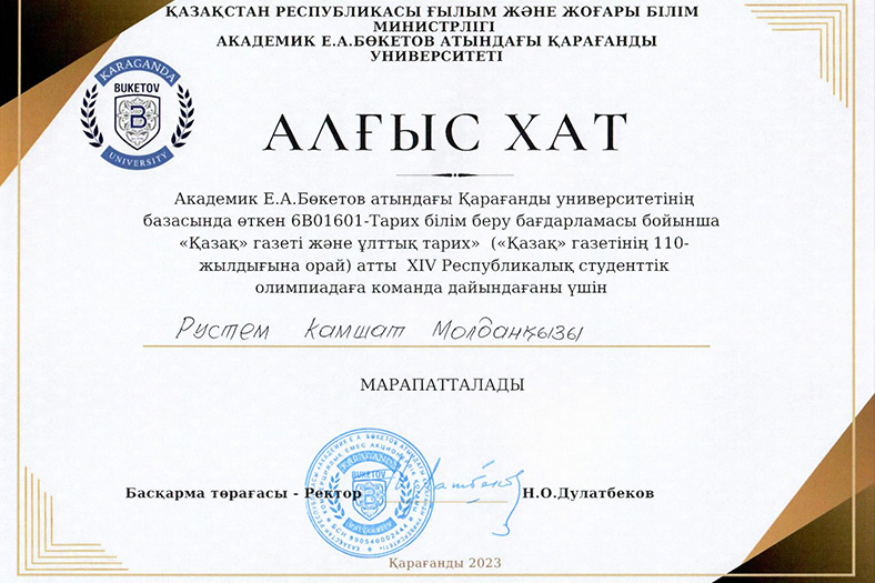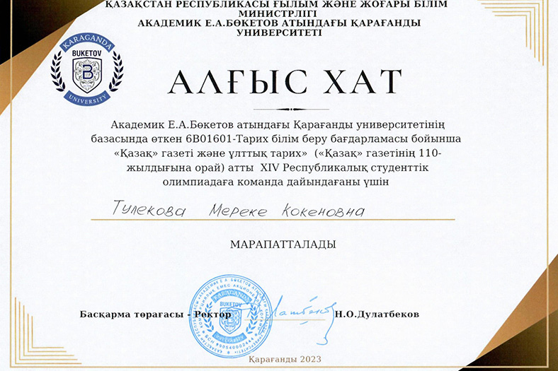 On April 27-28 April 2023 E. A. Buketov Karaganda State University hosted the XV Republican Student Subject Olympiad on the theme "The newspaper "Kazakh" and the national history" (to the 110th anniversary of "Kazakh" newspaper).