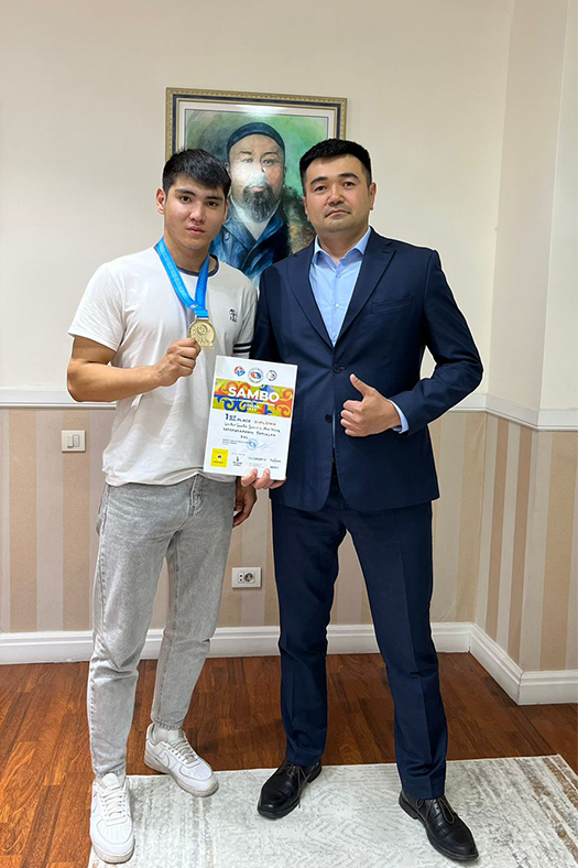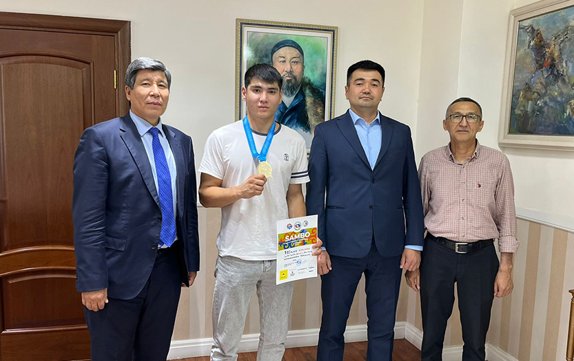 Rector of Abai University Darkhan Bilyalov congratulated Tamerlan on his victory and wished him success in his sports career! Awarded with special prizes of Abai University.