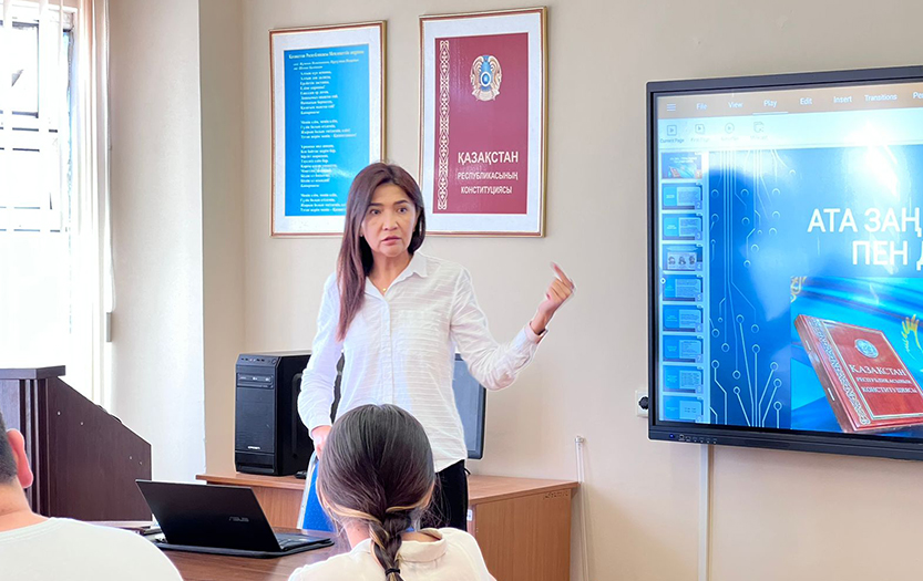 On August 29, 2023 in the 509th classroom of the educational building №10 of Abay KazNPU held a round table "Constitution - a guarantee of stability and development", organised by the Directorate of the Institute of History and Law, the Department of Jurisprudence and student self-government organisation. Aliya Kasymbek, senior lecturer of the Department of Jurisprudence, made a report.