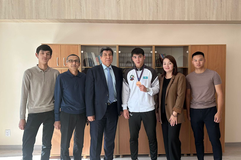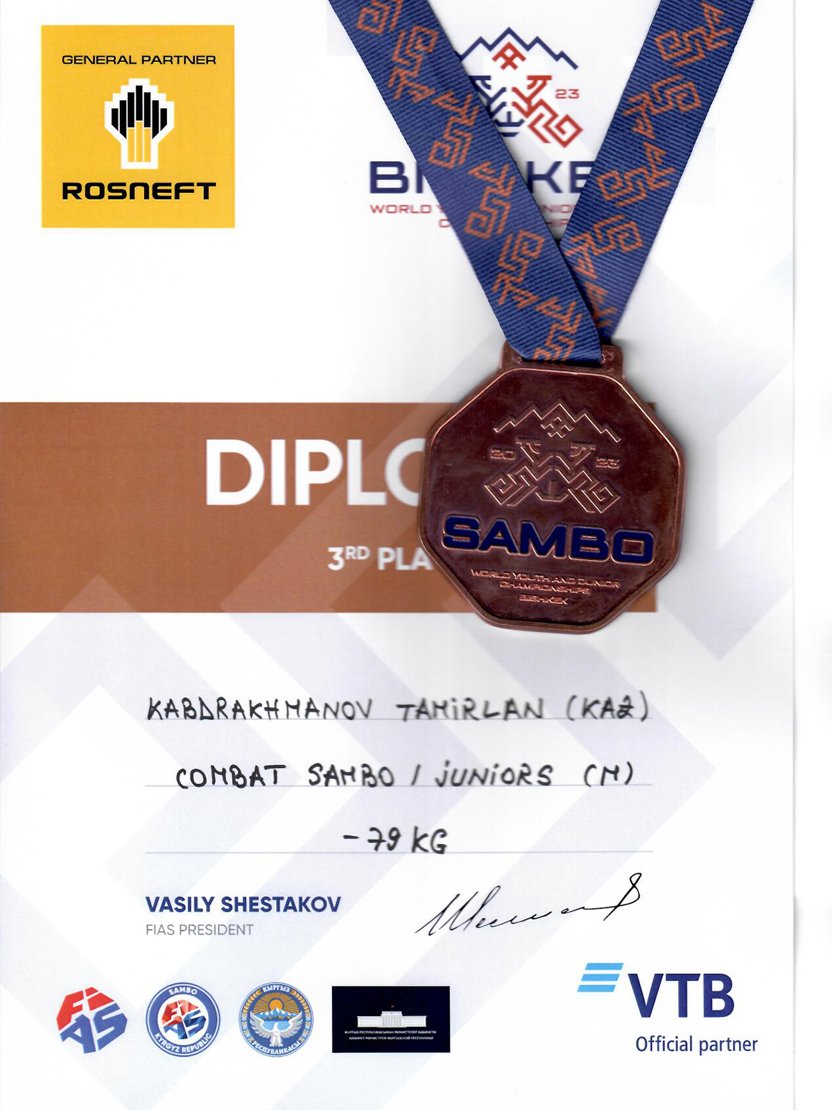 In October 2023 in Bishkek (Kyrgyzstan) the World Championship on combat sambo among juniors and youth was held. Tamirlan Kabdrakhmanov, a 4th year student of the speciality "6B04202-Law" of the Institute of History and Law, took the third place at this competition.