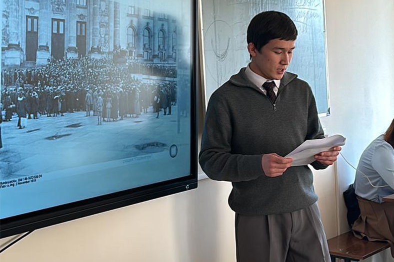 On November 7, 2023 at the Institute of History and Law of Abai KazNPU held a historical and cognitive educational hour on the theme "World significance of the Russian Revolution of 1917", dedicated to the 106th anniversary of the October Revolution. The event was attended by 4th year students of the speciality "History-geography". The aim was to show the importance of the revolution of 1917 for the world history, to reveal its influence on the countries of Asia and Europe. The cognitive hour was organised by Professor of the Department of World History Suteeva Kanzada and Master`s student Gani Aiganim. The event was attended by students of the Institute, as well as Professor Tulekova Mereke, Associate Professors Kalieva Yeleukhan and Dairabayeva Aizhan, Deputy Director for Educational and Training Work of the Institute Manapov Nurlan.