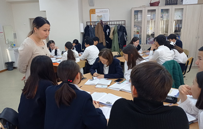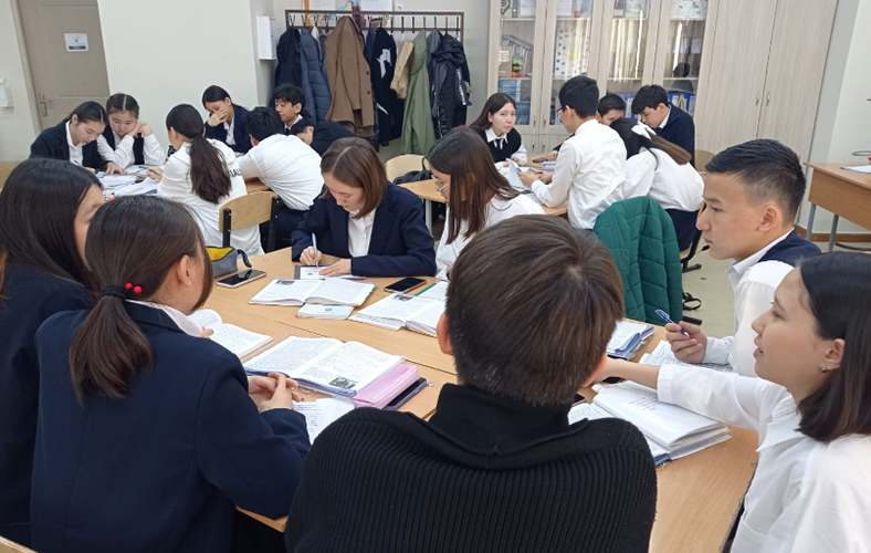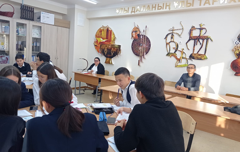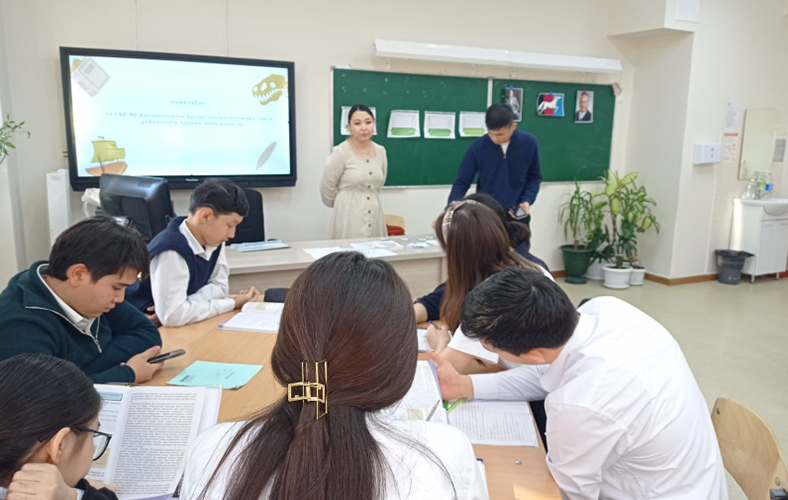 On November 22, 2023 in the framework of pedagogical practice at the gymnasium No. 123 named after H.A.Yassaui in Almaty, 4th year students of the Institute of History and Law of the specialty «6b01601-History» Almagul Kairatkyzy with students of the 8th grade on the topic «National autonomies in Kazakhstan», and Nazira Nurmukhanbet with students of the 9th grade on the topic «Contradictions in the socio-political development of Kazakhstan in the 60-80s of the XX centuries». The open lesson was attended by Deputy Director for Educational Work of the Institute of History and Law Nurlan Manapov, head of the practice teacher-expert of the gymnasium No. 123 named after him. H.A.Yassawi Kaldybek Zhanykulov, Head of the Department of History Aynash Azerbayeva, history teachers and 4th year students. The content of the lesson fully corresponded to the specified topic and lesson plan.