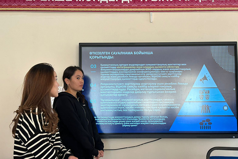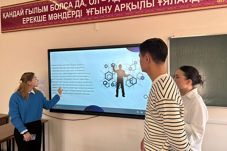 On November 24, 2023, under the guidance of senior lecturer of the Department of Political Science and Socio-Philosophical Disciplines of the Institute of History and Law of KazNPU named after Abai, Aliya Sailaubekkyzy, an educational student lesson was held on the topic "Development of sociology in Kazakhstan. Problems and prospects". Students of the 4th year of the specialty "Sociology" spoke at this event.
