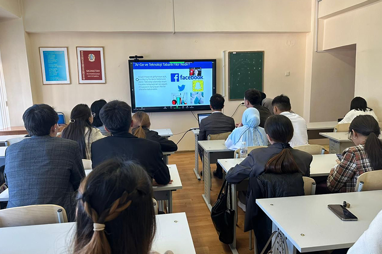 On November 27, 2023, the Institute of History and Law of Abai KazNPU, the Department of Political Science and Socio-Philosophical Disciplines held an international scientific seminar on «Technological innovations and Entrepreneurship» within the framework of the discipline «Sociology of Labor and Entrepreneurship». Yasmin Etkin, lecturer at the University of Vienna, Van, Republic of Turkia, Director General of the Van Technocent Research Center, delivered a report on the topic at the seminar.