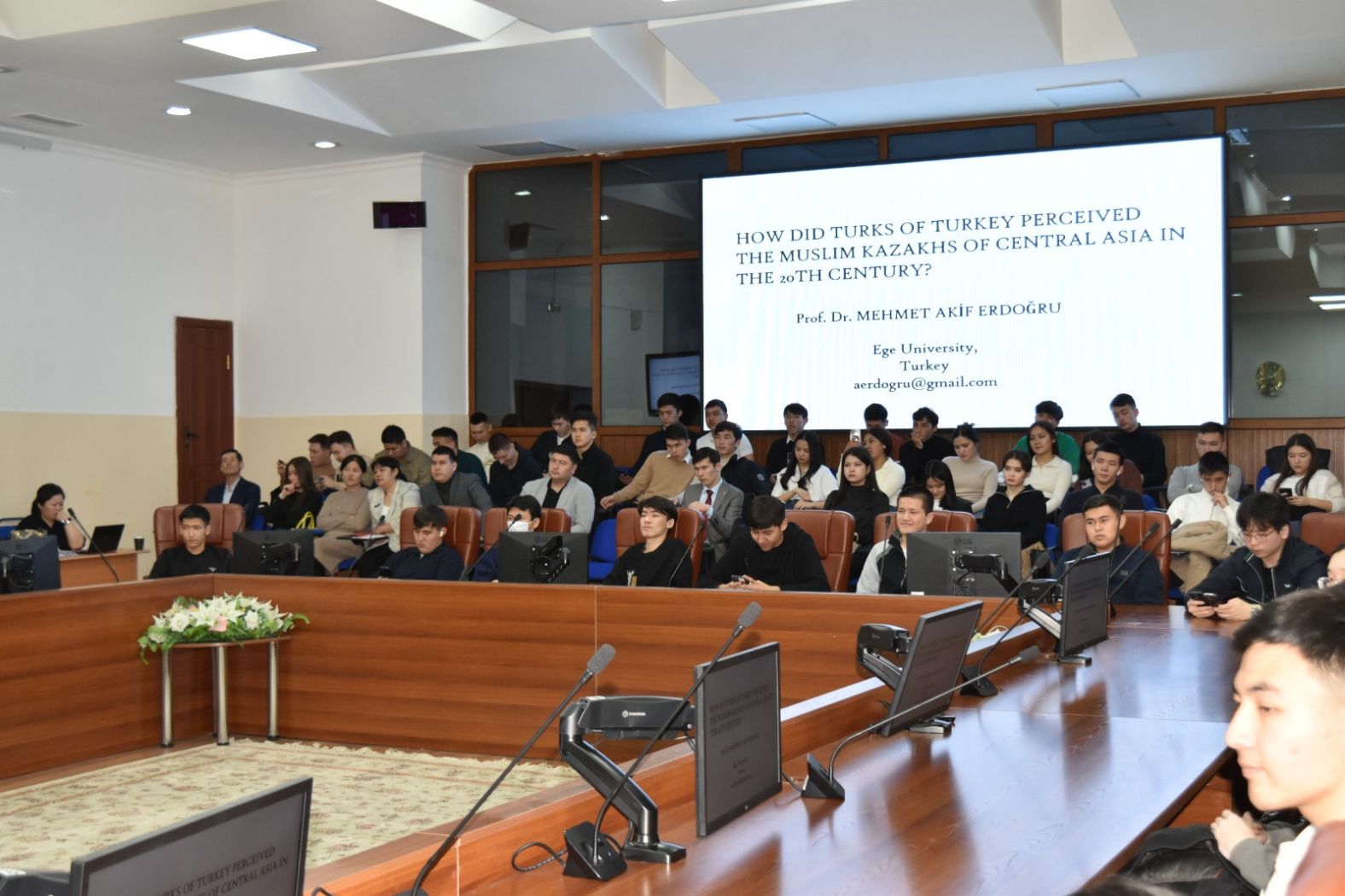 The event was attended by the Vice-Rector for Research Activities of KazNPU named after Abai E.A. Buribaev, head of the department of political science and social and philosophical disciplines Zh.K. Simtikov, director of the Institute of History and Law G.K. Kenzhebayev, deputy director for scientific work M.M. Muratkazin, deputy director for educational and social work N.T. Manapov and teachers. The Consul General of the Republic of Turkey in Kazakhstan Evren Muderrisoglu and Professor of the Aegean University, Doctor of Historical Sciences Mehmet Akif Erdogru made presentations.