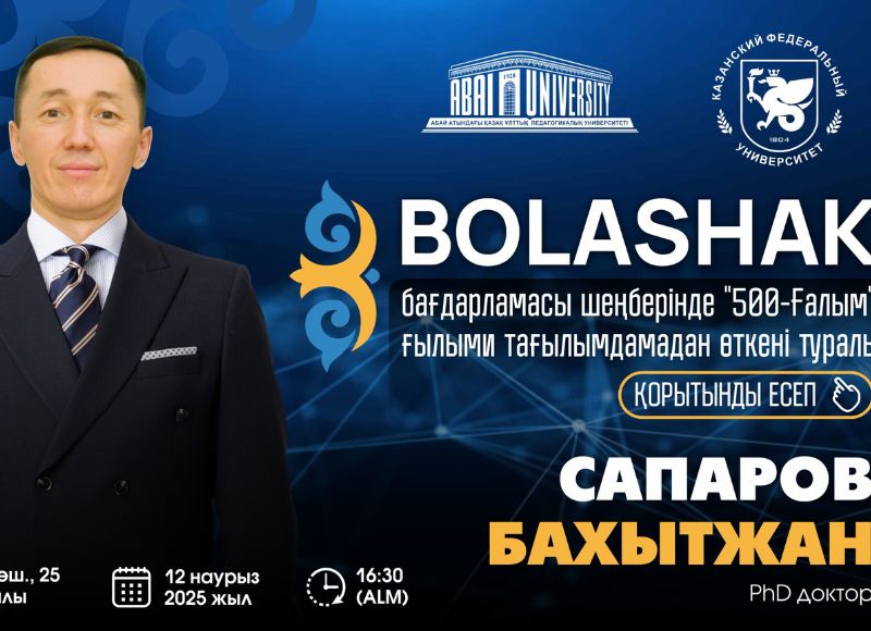 A teacher at Abai University has successfully completed a scientific internship under the 500 Scientists program On March 12, 2025, a meeting of the Department of Political Science and Socio-Philosophical Disciplines was held at the Faculty of History and Law of the Kazakh National Pedagogical University named after Abai, where the final report of PhD Bakhytzhan Saparov on the completion of a scientific internship under the «500 Scientists» program under the Bolashak scholarship was heard. Internship topic: «Promotion of cultural diversity and national education in modern education».