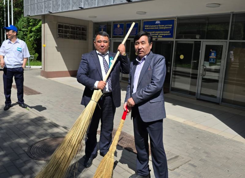 On May 8, 2025, in accordance with the Message of the President of the Republic of Kazakhstan Kassym-Jomart Kemelevich Tokayev to the people of Kazakhstan, in order to implement the Concept of developing the ecological culture of "Taza Kazakhstan", an event was held to hold a mass clean-up near the academic buildings and dormitories of the university. The team and students of the Department of Political Science and Socio-Philosophical Disciplines of the Faculty of History and Law, as well as staff of the Dean`s Office, took part in the mass clean-up. During the clean-up day, the courtyard of the Faculty of History and Law was cleaned, and the environmental challenge gave a productive result. The largest event at the national level, directed by Kasym-Zhomart Kemelevich, continued within the framework of the University.