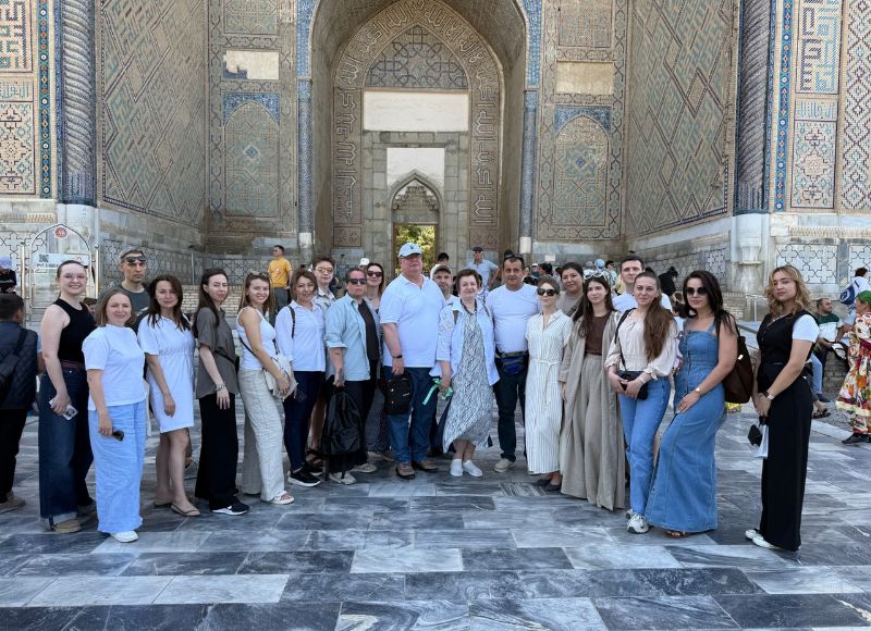 As part of the summer school program, an excursion was organized to the historical and cultural landmarks of Samarkand, such as the Gur-e-Amir Mausoleum, Registan Square, the Mirzo Ulugh Beg Madrasa, the Ark Citadel, the historical Bibi-Khanym Mosque, and others. The excursion allowed participants to dive deeper into the aesthetics of the Eastern world.