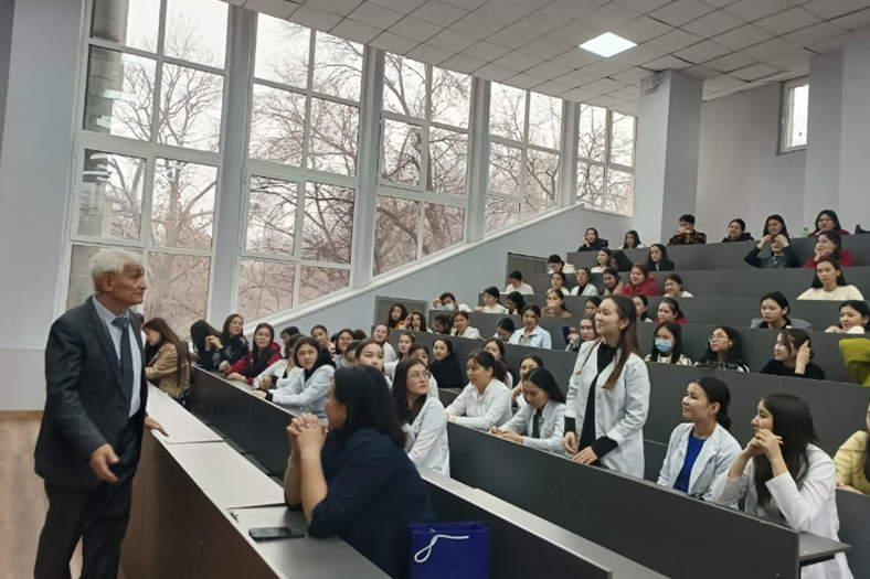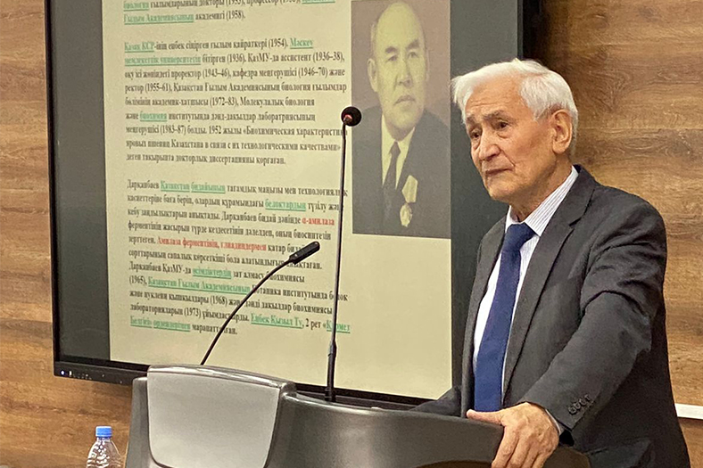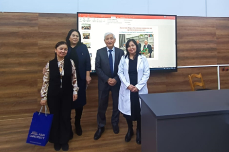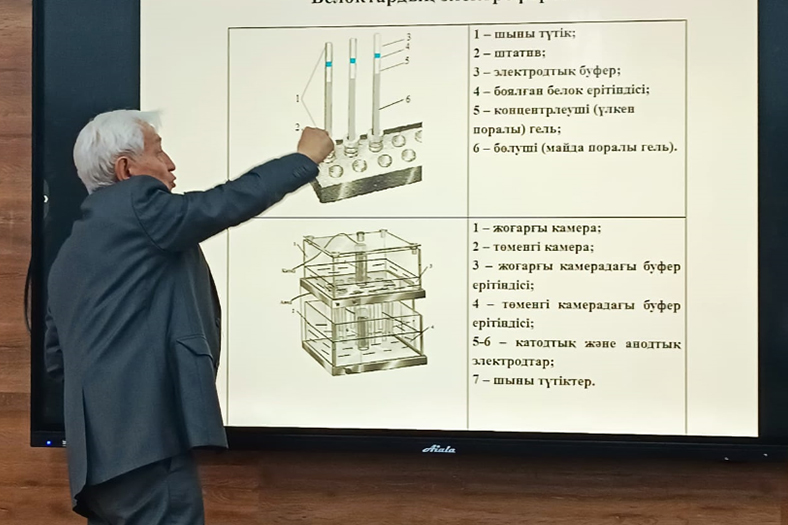 On December 1, 2023, at the Institute of Natural Sciences and Geography a meeting was held with the leading scientist, candidate of Biological Sciences, Professor A. E. Erezhepov. The scientist gave a lecture to 3rd year students of specialties «6B01513-Biology», «6B01501-Biology» on the topic «Methods of separation, purification and research of proteins». Students received answers to questions of interest to them.