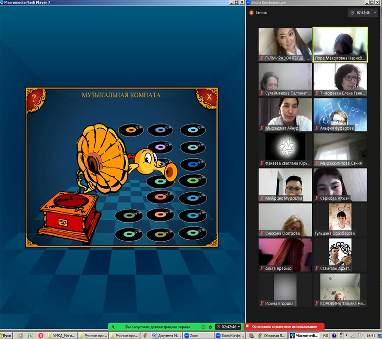 The themes of the course were widely covered by L.Narikbaeva: "Formation of information competence of the modern musician on the basis of music and computer technologies"; "Methods of teaching musical disciplines with use of music and computer technologies"; "Use of tablet and mobile technologies in music education". The lectures were directed on formation of knowledge of modern information and communication technologies as well as mastering of practical skills of usage of special musical computer programs and mobile applications at music lessons of different types (piano, vocal, music theory, soltseggio, musical literature). A specially compiled list of links to relevant Internet platforms, web pages and music computer learning programs was given by the lecturer as methodological advice.