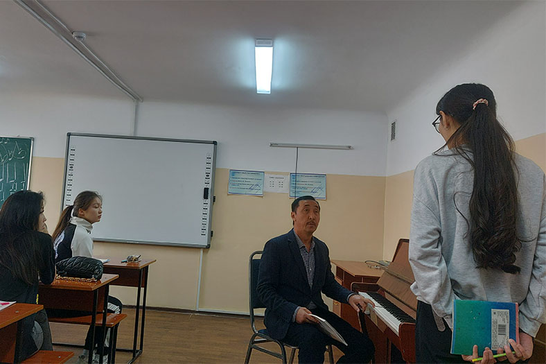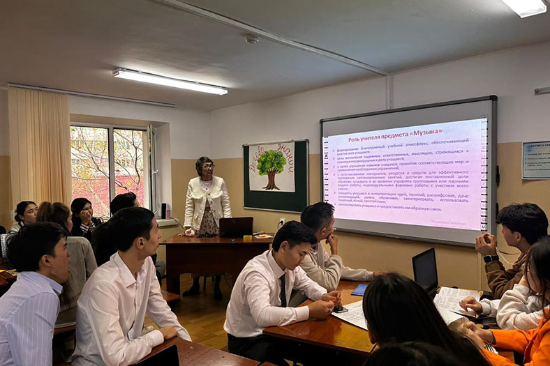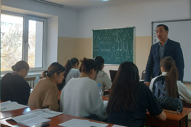 Thus, on October 11, open classes were held by senior teacher Samat Togelbayuly with 4th year students of the educational program "6B11102 - Cultural and leisure work" in the discipline "Musical Literacy" and associate professor Erbolat Mustafayev in the discipline "The main instrument is the dombra" with 1st year students of the educational program "6B01402-Music Education", where the main task was to provide fundamental knowledge about music and basic skills in playing the dombra.