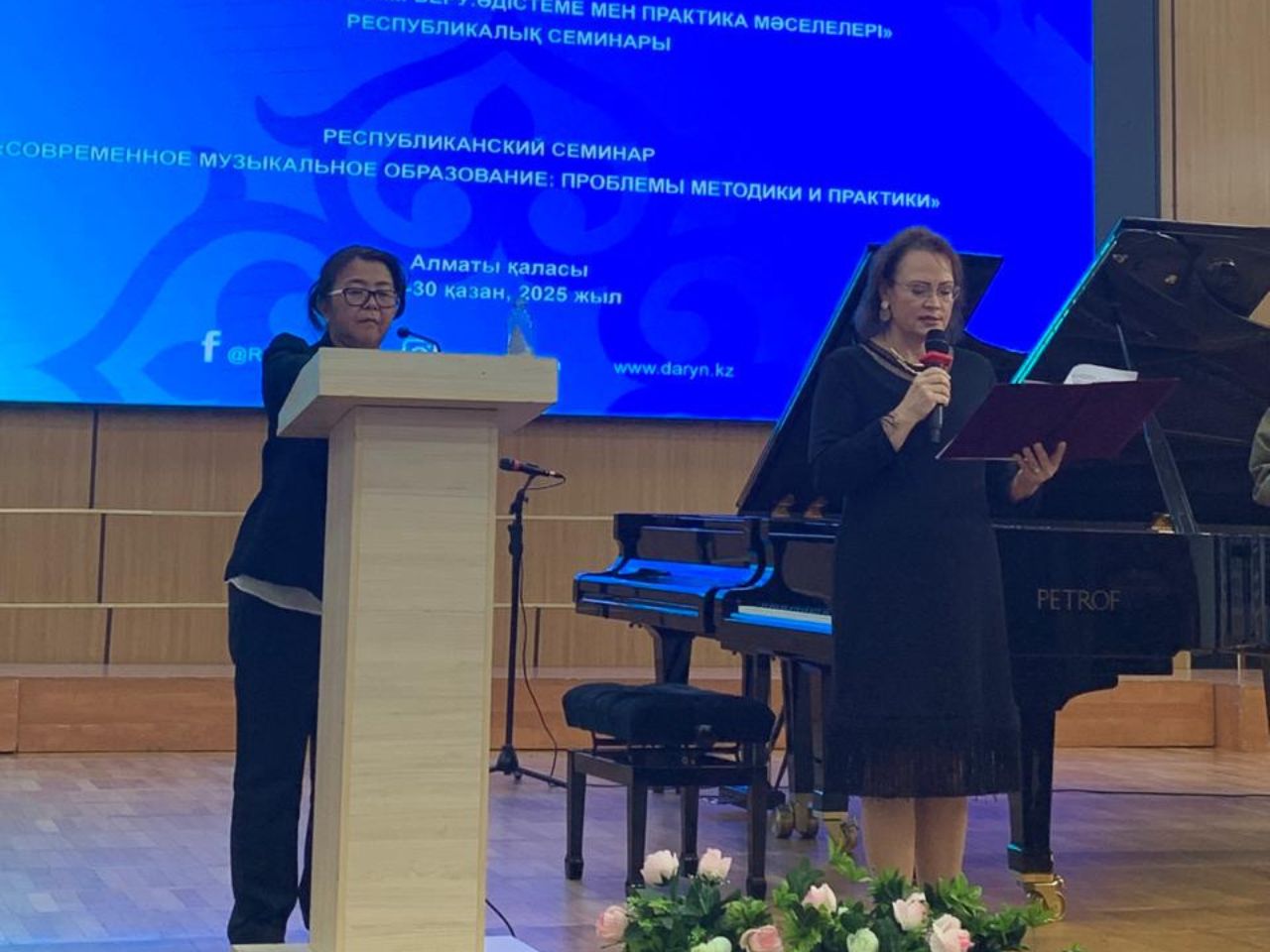 On October 29-30, 2025, Acting Professor of the Department of Music Education and Choreography, K.E. Ibraeva, took part in the Republican seminar titled "MODERN MUSIC EDUCATION: ISSUES OF METHODOLOGY AND PRACTICE," organized by the Republican Scientific and Practical Center "Daryn" and the Kulyash Baiseitova Republican Specialized Boarding Music School for Gifted Children.