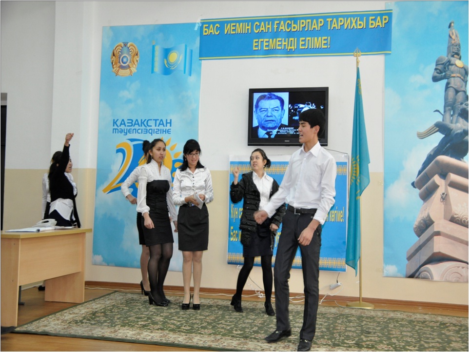 Мен қазақпын мың өліп, мың тірілген... - деп Жұбан Молдағалиев жырлағандай, біз көк байрағымызды мақтанышпен жоғары көтеріп, өз Елтаңбамыз бен Әнұранымызды әрқашан да қастерлейміз. Күн сәулесі аспанымызда жарқырап, тәуелсіздік пен өрліліктің белгісі - дала қыранының қанаты талмай, шарықтай беруде аянбай тер төккен ата-бабаларымыз, ұлы ағартушы қоғам қайраткерлерінің өмір жолы мен еңбектерінен үлгі алу қайсымыздың болса да Отан алдындағы борышымыз деп санаймыз. Міне, осыған байланысты Педагогика-психология факультетінің әлеуметтік педагогика және өзін-өзі тану мамандығының 1 курс студенттерінің қатысуымен оны аға оқытушылар Анар Әлімбекова мен Рәзия Каримова «БАС ИЕМІН САН ҒАСЫРЛАР ТАРИХЫ БАР ЕГЕМЕНДІ ЕЛІМЕ» атты ашық тәрбие сағатын ұйымдастырды. Тәрбие сағатының мақсаты білім алушыларға қазақ ғұламалары мен ағартушыларының, жазушыларының еңбектері арқылы адамгершілік, патриоттық тәрбие беру. Көрермендерді еліне деген мақтаныш пен сүйіспеншілікке бөлетіп, үлкен әсер қалдырды. Тәрбие сағатында еліміздің әнұраны орындалып, «Желтоқсан оқиғасының» куәгерлерін құттықтады. Сондай-ақ қазақтың дана бабалары, ұлы хандары, ұлы ойшылдары мен ақындары, ағартушылары, жазушылары және би шешендерінің өсиет сөздерінен үзінділер оқылып, ән шырқалып, өткен оқиғалардын көріністері қойылды.
