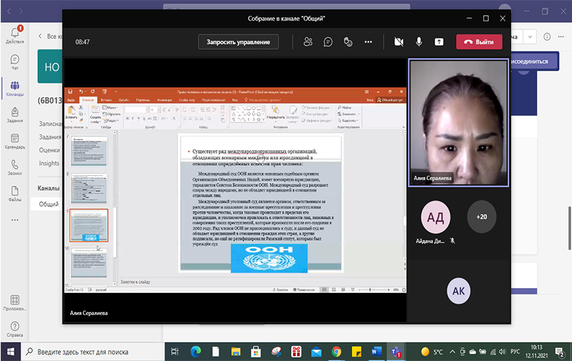 On November 15, 2021, as part of the educational work at the Department of Jurisprudence of the Institute of History and Law of Abai KazNPU, a webinar «Protection of children`s rights in modern society» was held with students of the 2nd, 3rd courses of the specialty «Jurisprudence», «Primary Education and ICT».