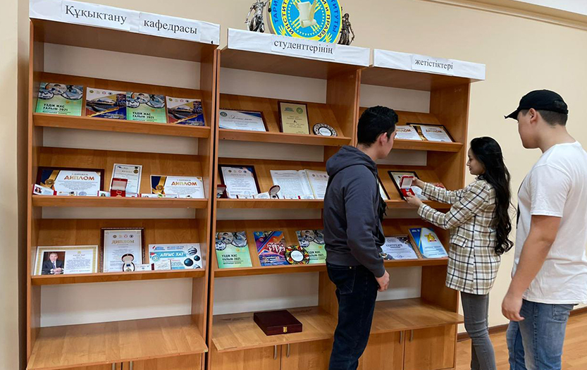 One of the memorable events of the decade was an exhibition of achievements of members of the «Zanger» club of the Jurisprudence Department of the Institute of History and Law, which was held on 6-7 April 2022. The Vice-rector on scientific work of the university, professor E.A. Buribayev, the head of the chair B.M. Koshpenbetov and the head of the club «Zanger» G.B. Meirbekova took part in organization of the exhibition.