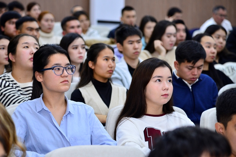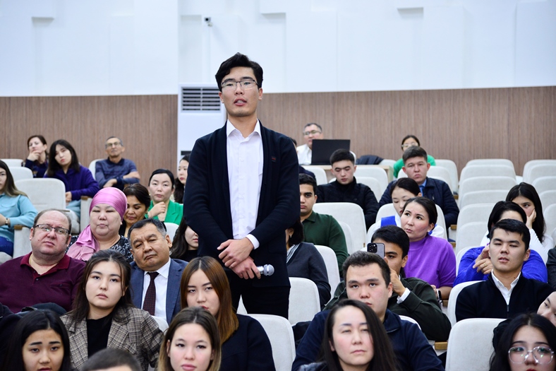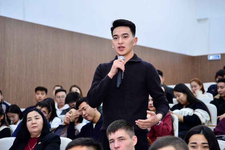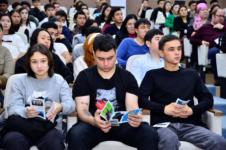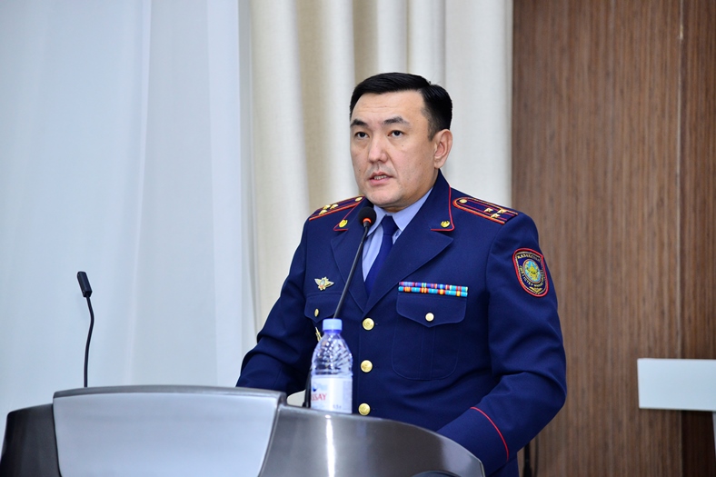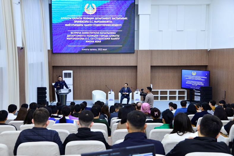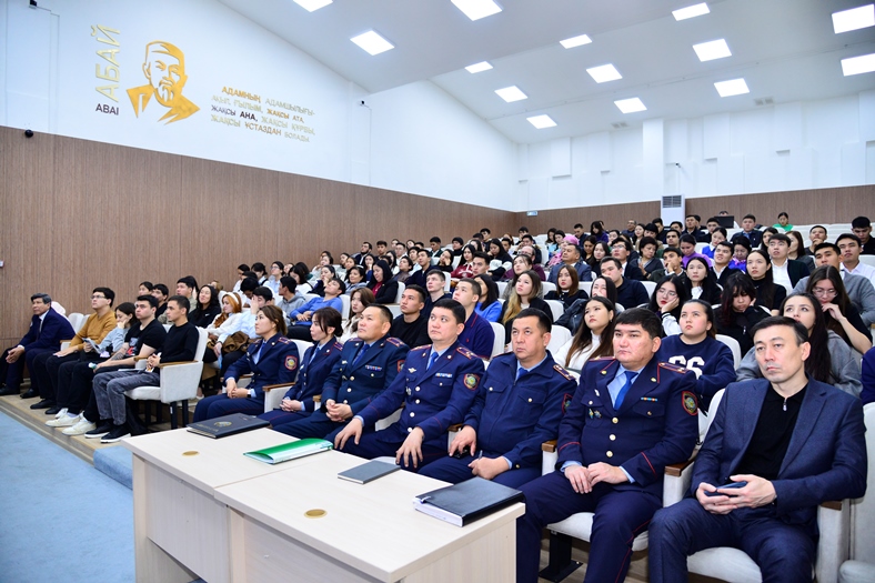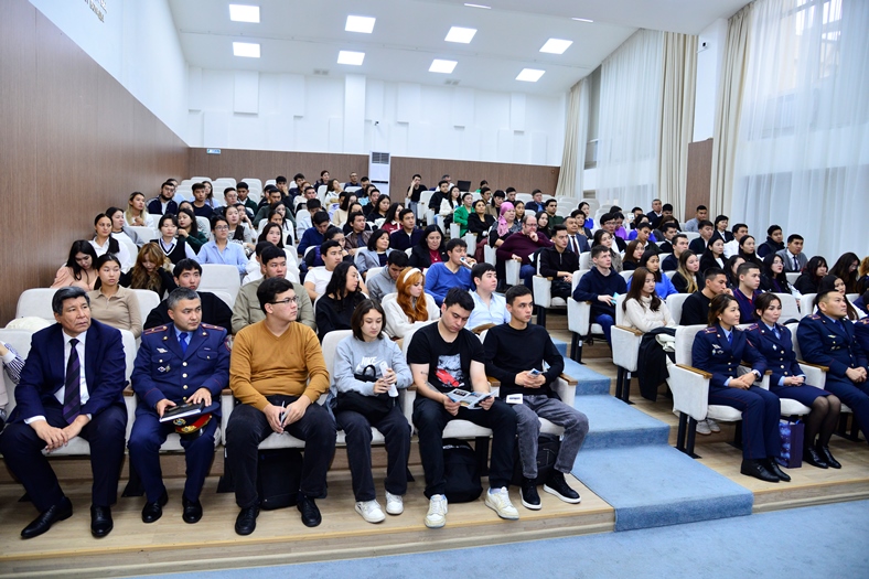 Olzhas Myrzabekov, Deputy Head of the Police Department, also emphasising the importance of the event, outlined topical issues related to the choice of professional activity in the department, the fight against drug crime and road safety. His presentation touched upon the work of traffic police in Almaty and measures taken to prevent drug trafficking. Olzhas Myrzabekov paid special attention to the responsibilities of future lawyers, noting their essential role in ensuring public safety. Police officers also discussed the requirements and social benefits, security and norms of behaviour of citizens.