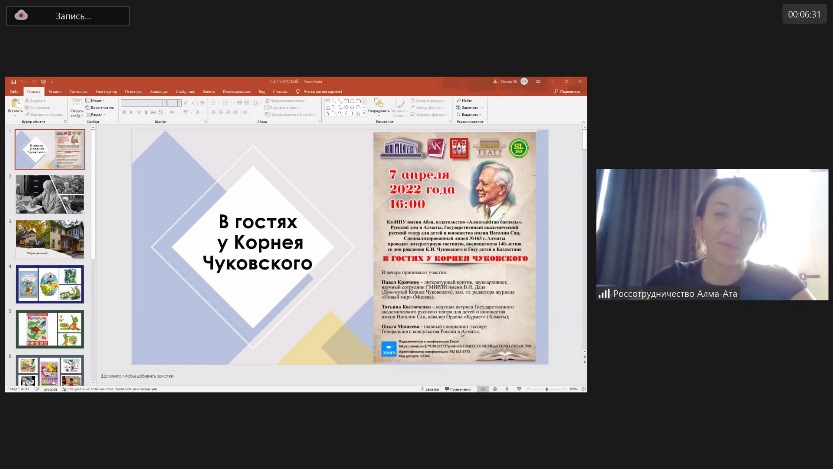 Those present were greeted by Olga Moshcheeva, chief specialist-expert of the Consulate General of Russia in Almaty and the representative office of Rossotrudnichestvo. Eight-graders of the Specialized Lyceum No. 165 in Almaty offered the audience their understanding of the creative path of K. Chukovsky.
