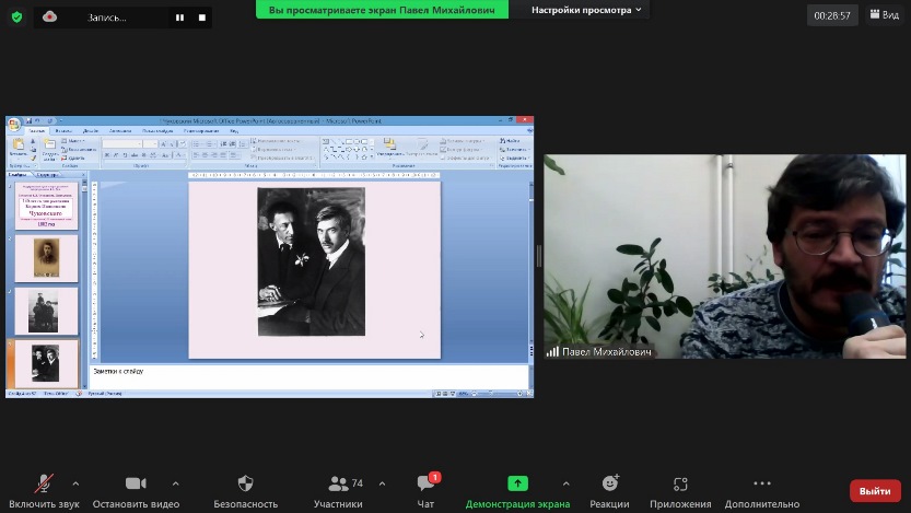 More than 70 participants of the meeting really got to visit the writer: the story of Pavel Kryuchkov, an employee of the House-Museum of Korney Chukovsky (Moscow), allowed schoolchildren, students and teachers to be transported to the writer`s village of Peredelkino, to the writer`s house, to plunge into the atmosphere of creativity, love and kindness. Young listeners learned about the difficult path of the writer, who, through hard work and faith in his rightness, overcame all the obstacles and trials of his era.
