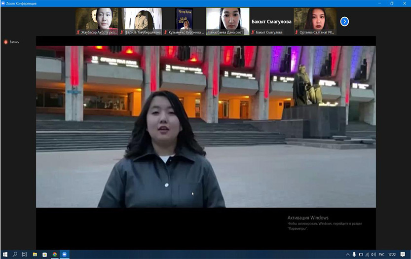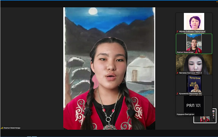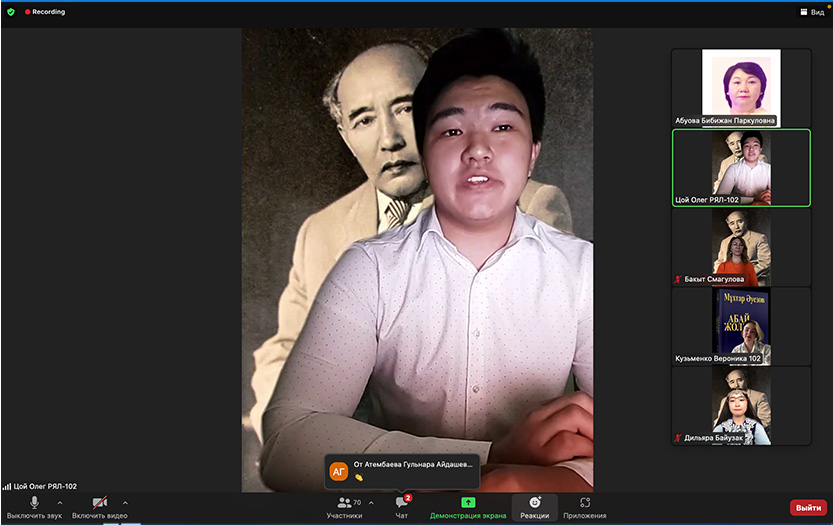 The event was organized by the advisors of the department Bakyt Smagulova and Fariza Bagymbaeva with the participation of 1st, 2nd and 3rd year students. The purpose of this event is to reveal the multifaceted talent of the classic of Kazakh literature.