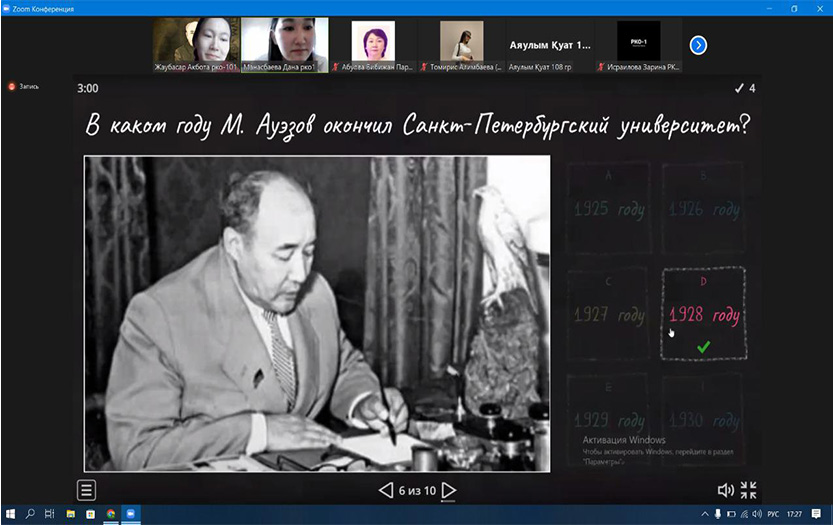 The most active participants showed off their knowledge about the life and work of Mukhtar Omarkhanovich, answering quiz and crossword questions compiled by 1st year students.