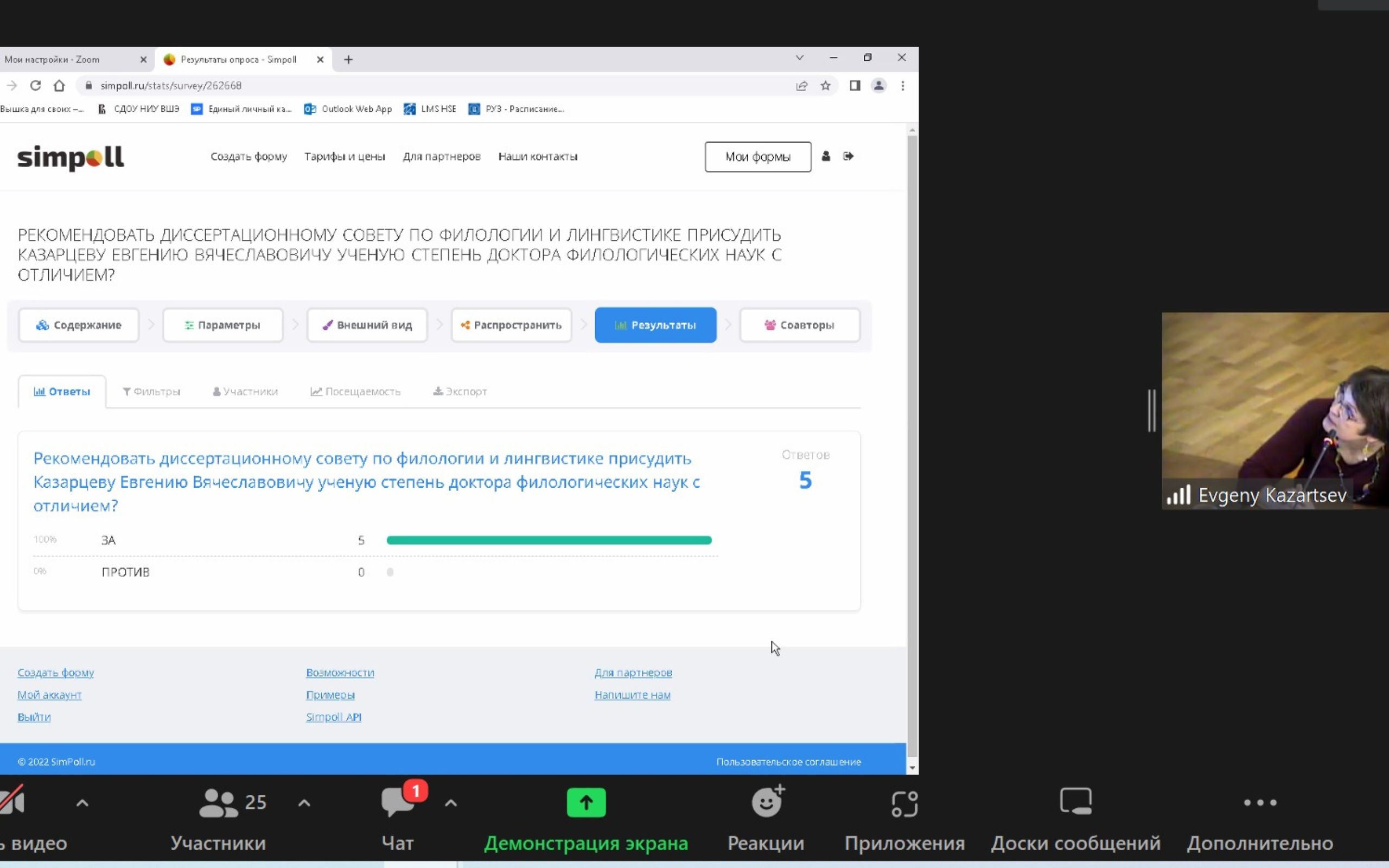 The Dissertation Council in Philology and Linguistics unanimously voted to award E. Kazartsev the degree of Doctor of Philology with honors.