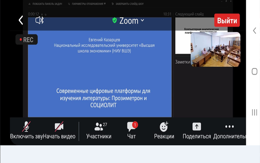 At the Department of Russian language and literature of the Institute of Philology of Abai KazNPU held an international seminar "Digital methods and computer technology in modern humanities", in which spoke E. V. Kazartsev - Doctor of Philology, Professor at National Research University Higher School of Economics (Moscow, Russia), Soner Sanlam - Doctor of Science, Associate Professor at Pamukkale University (Denizli, Turkey), S. Abisheva - Doctor of Philology, Professor, M. Absatova - Doctor of Science, Professor and M. Moldagali - Doctoral student.