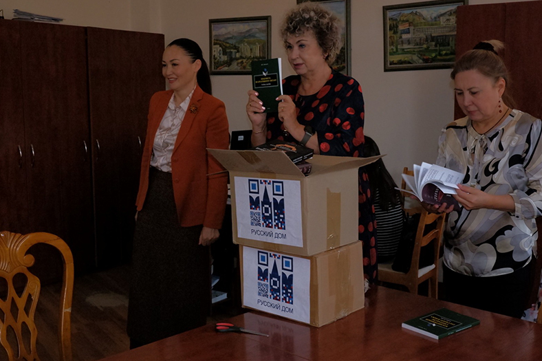 On November 7, 2023, within the framework of the "Pedagogical Festival" held by the Sheremetyevo Center of Nation Research Lobachevsky State University of Nizhny Novgorod (Russia) at Abai KazNPU, representative of Rossotrudnichestvo in Almaty Zubkova Tamara donated 100 books of "Flint" publishing house on the most pressing issues of modern philological science to the university library. The donation was timed to the anniversary date - the 95th anniversary of our university. The books will be digitized and included in the electronic catalog of the library of our university.