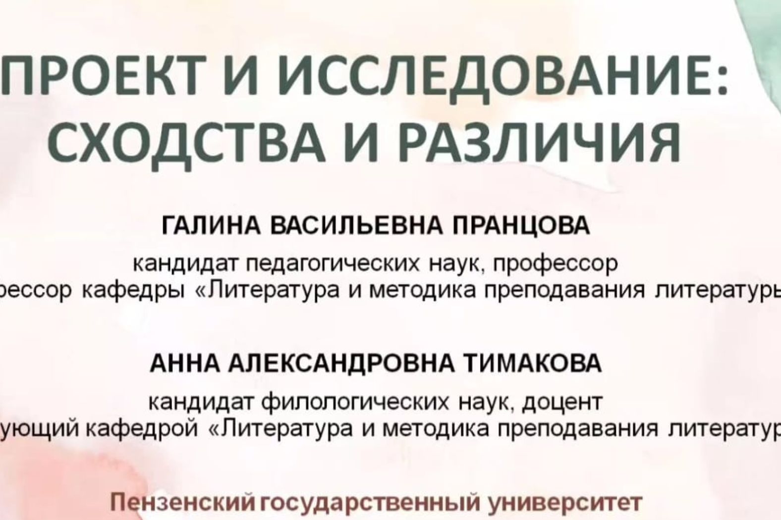 "Project and research: similarities and differences" is the topic of a speech by scientists of Penza State University Galina Prantsova, candidate of Pedagogy, Professor of the Department of Literature and Methods of Teaching Literature and Anna Timakova, candidate of Philology, Associate Professor, Head of the Department of Literature and Methods of Teaching Literature.