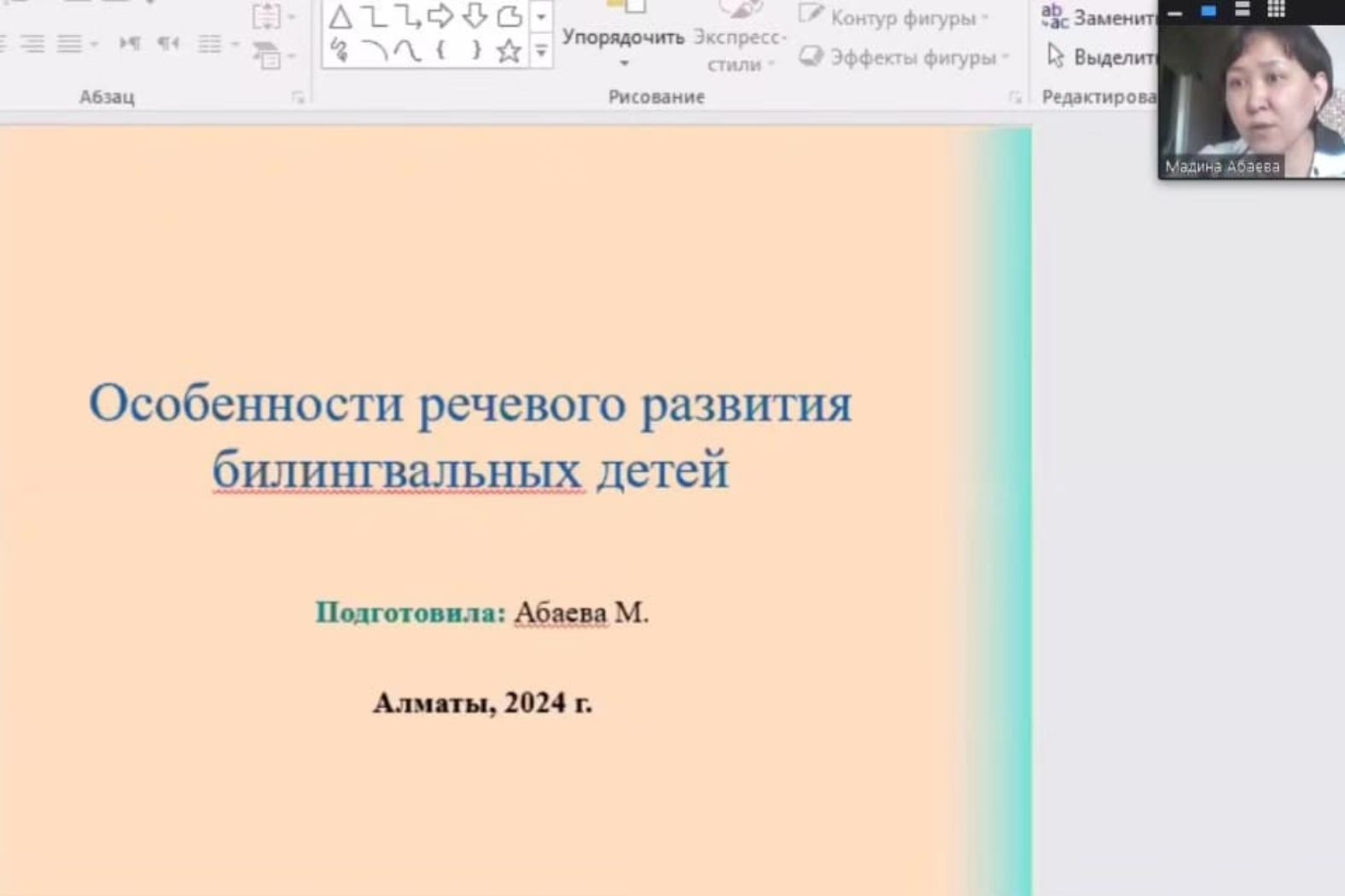 A wide range of theoretical issues related to the speech development of bilingual children was touched upon in the speech of Madina Abayeva, candidate of Philology, Head of the department of the section "Psycholinguistics" of A. Baitursynov Institute of Linguistics. The features of modern textbooks with updated educational content in the speeches were discussed in the reports of Aizhan Nusupbekova, PhD, teacher of Russian language and literature at Gymnasium №12 and Marina Assylbekova, candidate of Philology, teacher of Russian language and literature at Specialized Lyceum №165.
