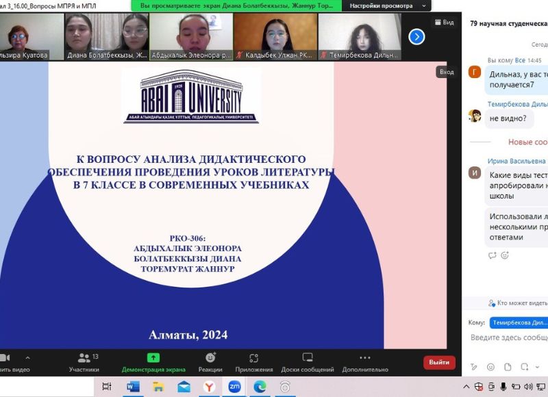 The Department of Russian Language and Literature at Abai KazNPU successfully held the 79th scientific conference for students, master`s, and doctoral students. More than 100 participants took part in the event, which was conducted in two formats: offline and online, with participants distributed across thematic rooms.