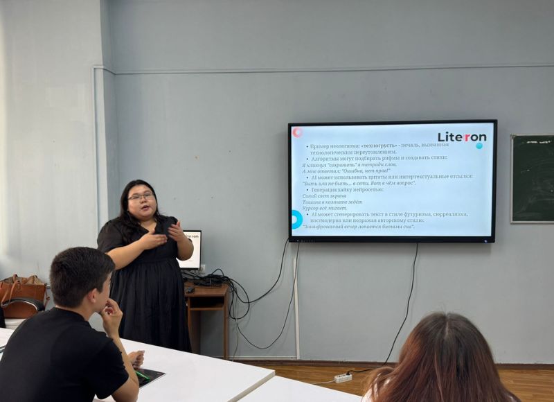 Seminar “Digital Poetry: New Trends in Literary Studies” As part of the scientific project "Zhas Galym" AP22685804 "Integration Potential of a Digital Platform for Studying Poetry", funded by the Ministry of Science and Higher Education of the Republic of Kazakhstan for 2024-2026, a seminar was held for students of the Department of Russian Language and Literature at Abai University. The seminar was conducted by the project leader, postdoctoral researcher M.B. Moldagali, and the scientific consultant, Doctor of Philology, Professor S.D. Abisheva.