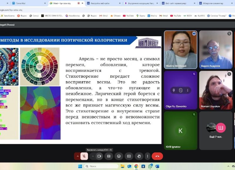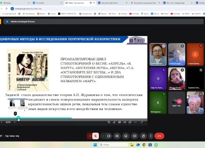 Participation in the International Scientific Conference “Modern Approaches to Literary Studies” On May 16, 2025, Doctor of Philology, Professor, and Head of the Department of Russian Language and Literature Saule Abisheva, together with postdoctoral researcher Madina Moldagali, took part in the international scientific online conference "Modern Approaches to Literary Studies", organized by Smolensk State University (Smolensk, Russian Federation).