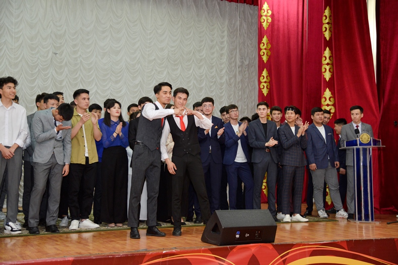 The jury consisted of Vice-Rector for Social Development Shyngys Nurlanov, Director of the Department of Educational, Social Work and Youth Policy Didarbek Dildabek, actor, blogger, zhaydarmanshi Medet Zhanabay, Director of the Almaty branch of the KVN Union of Kazakhstan Ondasyn Kulymbetov, Chairman of the party Amanat. Almaty, youth wing «Jas Otan» Akezhan Kenesov.